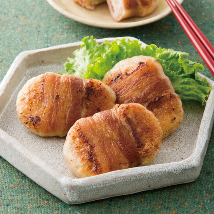 豚肉に塩、こしょうをふり、(1)に巻きつける。