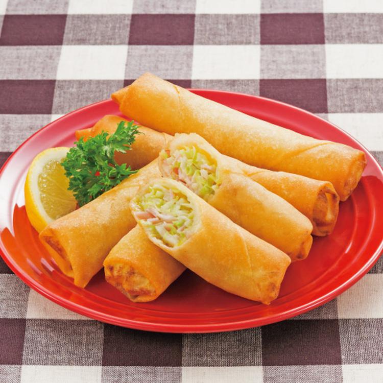 春巻きの皮に(1)を1/8量ずつのせて巻き、巻き終わりを水溶き小麦粉(分量外)で留める。