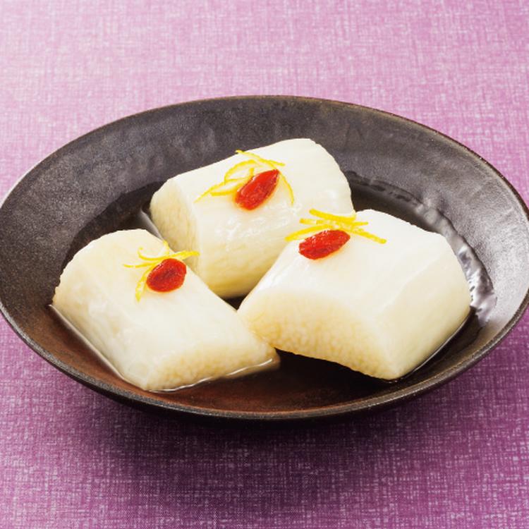 鍋に水気を切った(1)を並べ、Aを加えて蓋をする。弱火にかけて約15~20分煮含め、長芋をとり出して器に盛る。