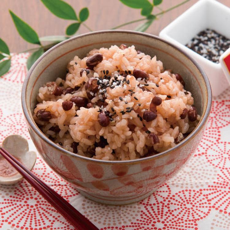ほんのり赤色に染まったご飯はもちもち、小豆もふっくらきれいに仕上がる、お手軽赤飯の作り方をご紹介。
