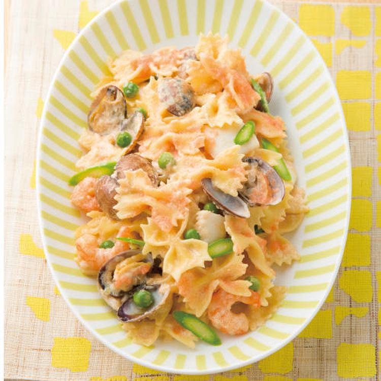 【あさりとアスパラのスープ蒸しアレンジ】あさり出汁の明太子パスタ