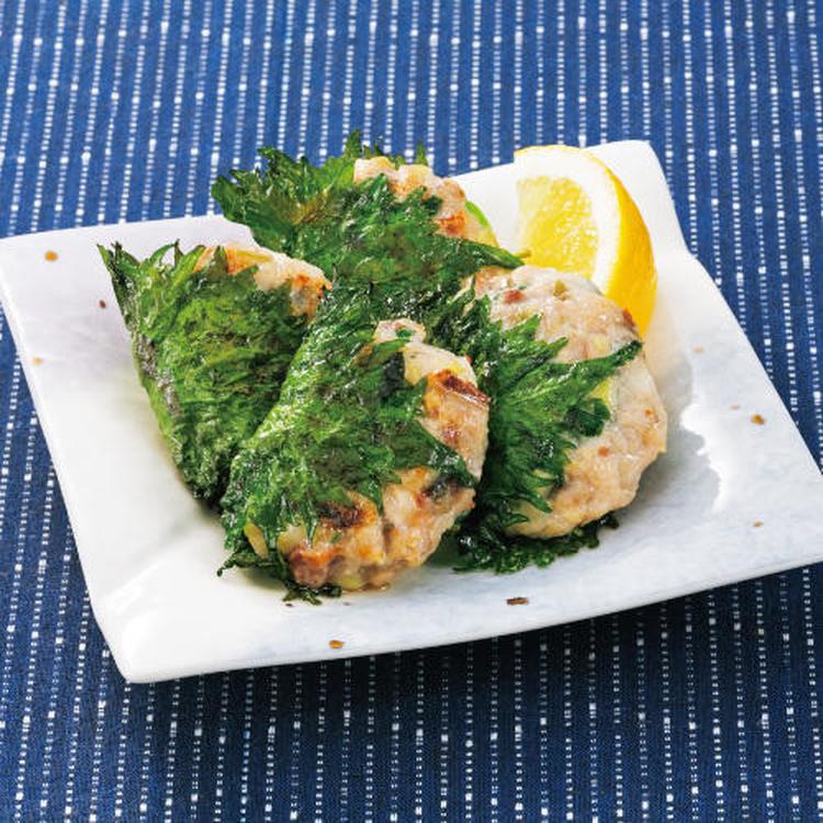鯵は3枚におろして粗みじん切りにし、Aを加えて細かくなるまで更に刻む。ねばりが出てきたら16等分して小判型にまとめ、大葉で包む。