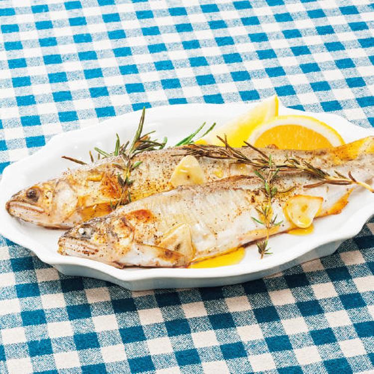 アユは水洗いしてぬめりを除き、水気を拭いて塩・こしょうを振る。