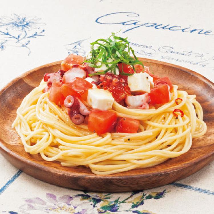 スパゲティはパッケージに従い、塩を加えた湯でお好みの硬さにゆで、オリーブ油を絡めて冷やしておく。