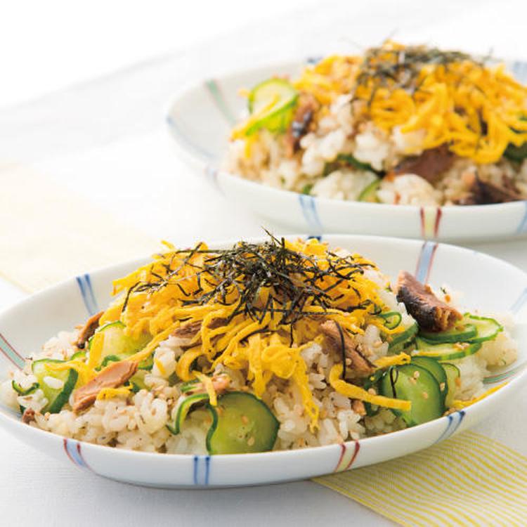ご飯にすし酢を混ぜ、酢飯を作る。