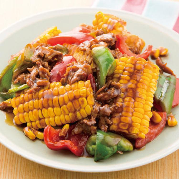 【レンジ蒸しコーンを使って】コーンと豚肉の中華炒め