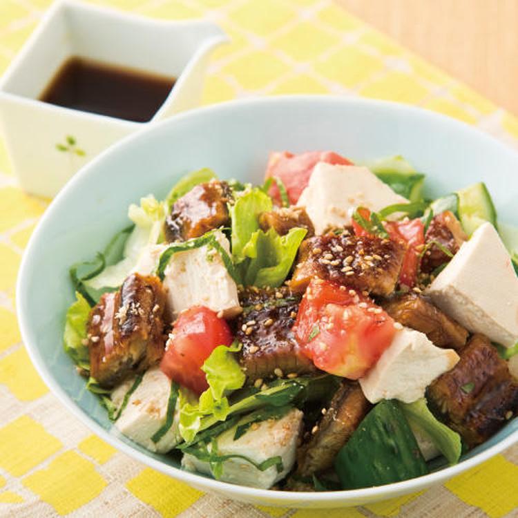 うなぎに酒をふり、電子レンジ500Wで1分加熱する。豆腐もレンジで2~3分加熱して水きりし、ひと口大にちぎる。