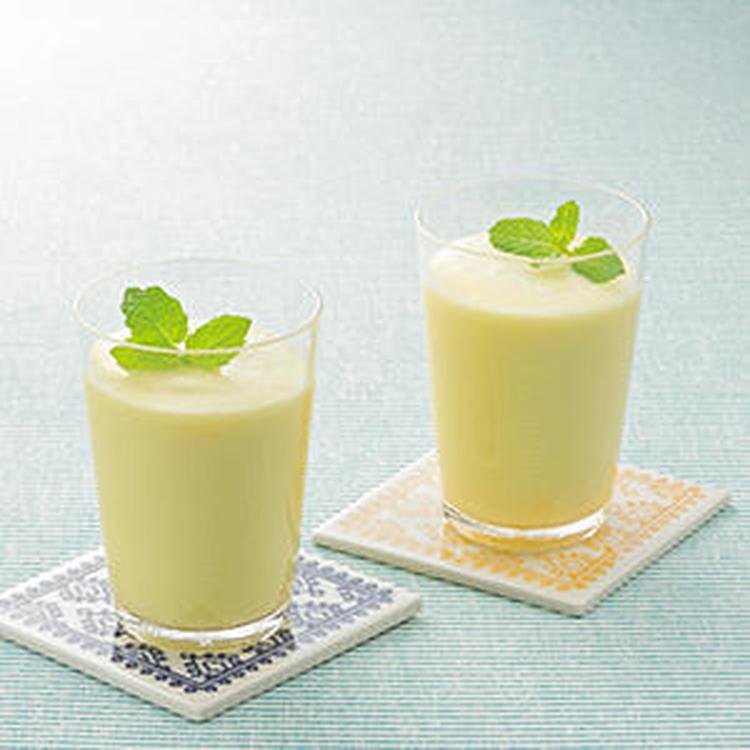 ミキサーにミント以外の材料と水1カップを入れ、滑らかになるまで撹拌する。
