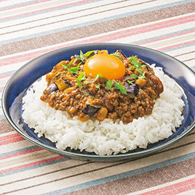 A・水2カップを加え、蓋をして約8分煮る。なすがしんなりとしたら一旦火を止めてカレールウを加え、弱火でとろみが付くまで煮る。