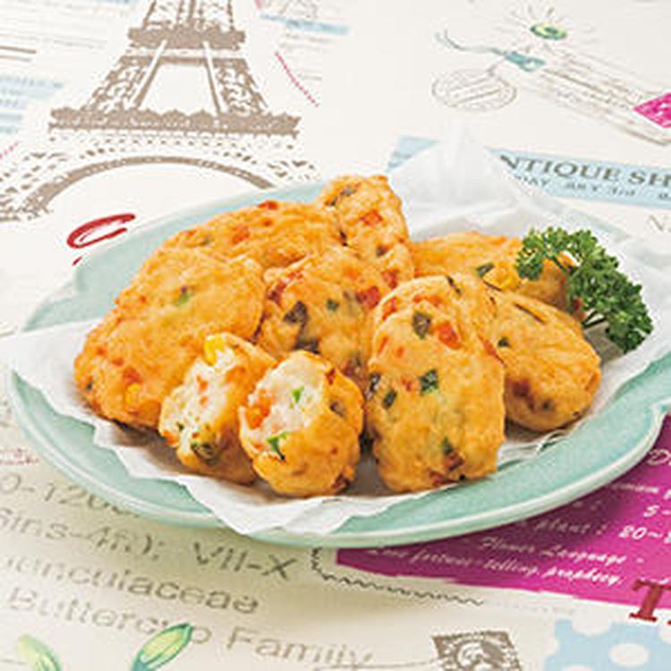 フライパンに約1cm高さまでサラダ油を入れて中火で熱し、(1)の袋の端を切ってスプーンにしぼり出し、形を整えて入れていく。約2分ずつ両面を揚げ焼きにし、最後に火を強めてこんがりと焼き色を付ける。