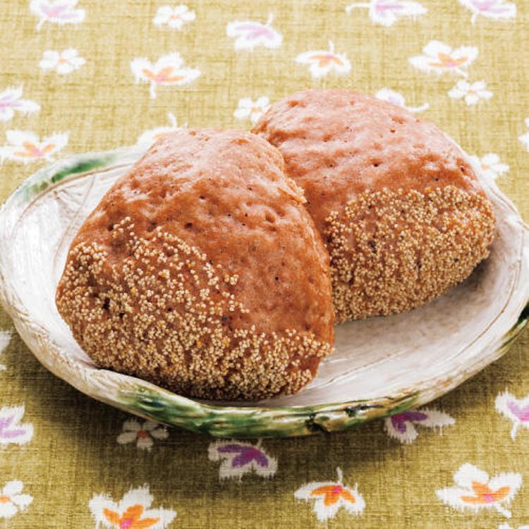 (1)の底の部分を残りの溶き卵に浸してけしの実を付ける。