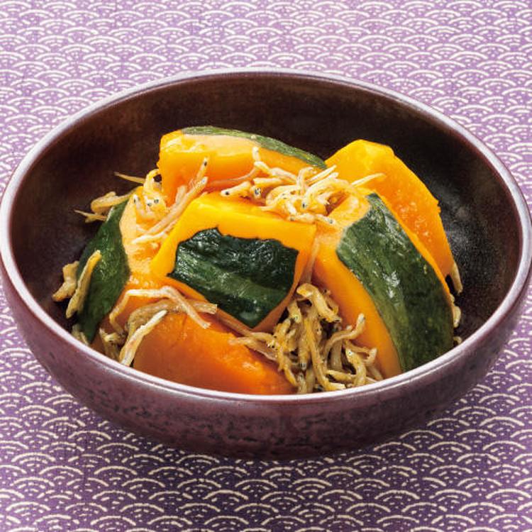 鍋にサラダ油を中火で熱し、(1)のちりめんじゃこを炒める。油がなじんだらかぼちゃを加えて炒め、水1・1/2カップとAを順に加えて蓋をし、約10分煮る。