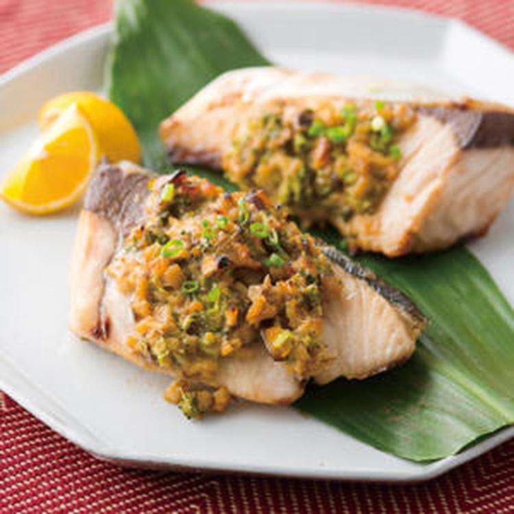 (1)に(2)をのせ、アルミホイルをかぶせてグリルで焼く。