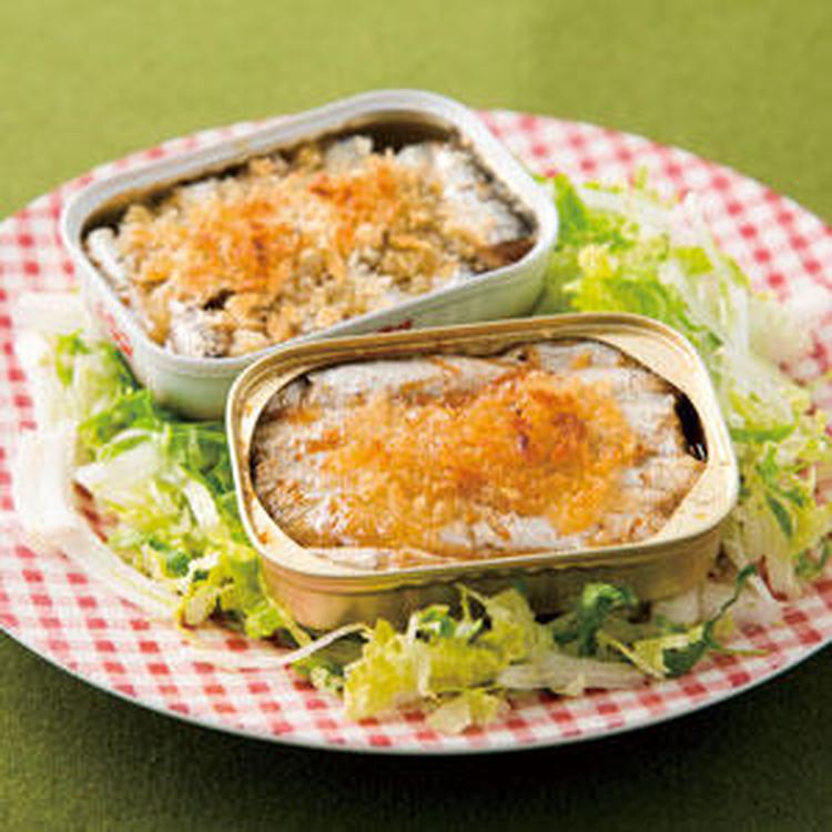 (1)にしょうゆを回しかけ、パン粉をのせて、缶ごとオーブントースターで3~4分焼く。