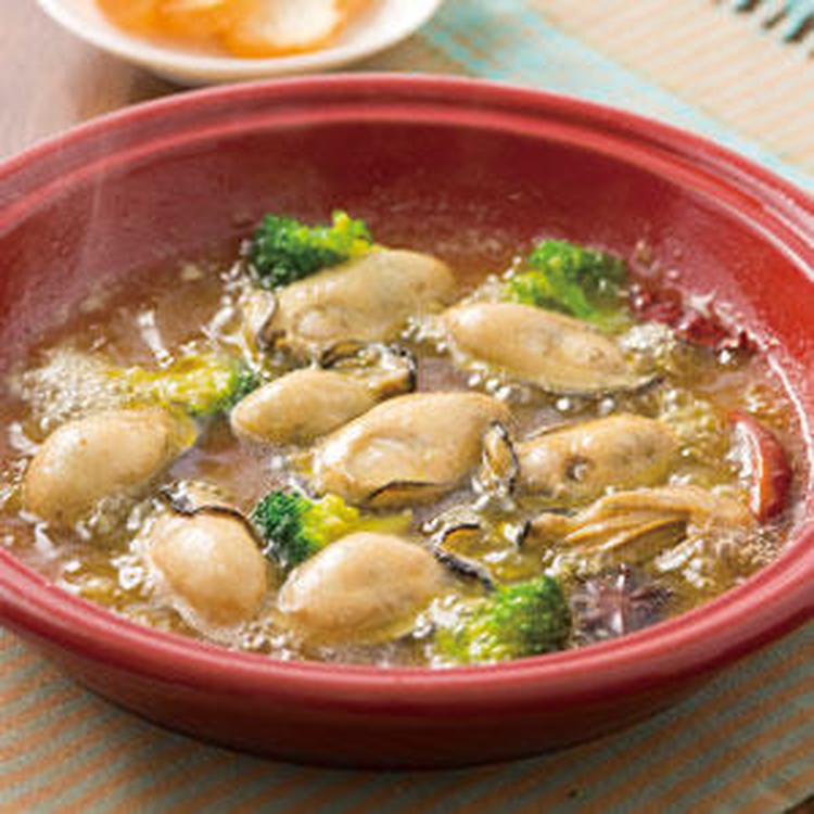かきに火が通ったらブロッコリーを加えてひと煮立ちさせ、火からおろしてバゲットと共にいただく。