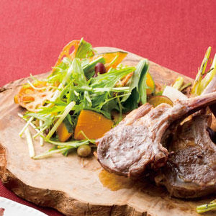かぼちゃは耐熱皿に並べ、少し水をふりかけて軽くラップをかけ、電子レンジ500Wで3分加熱し、粗熱を取る。れんこんは分量外の揚げ油で素揚げする。