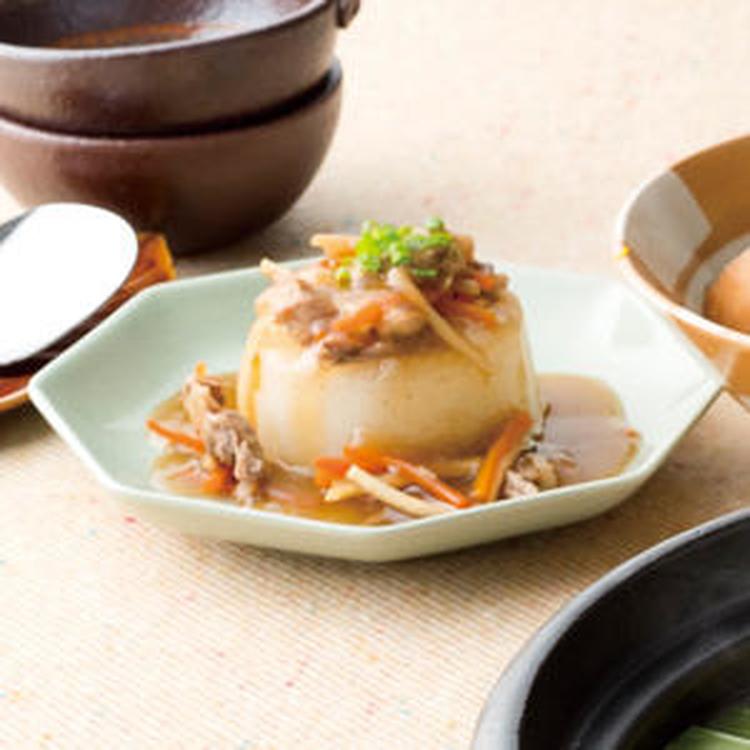 器に大根を盛って(2)をかけ、青ねぎをのせる。