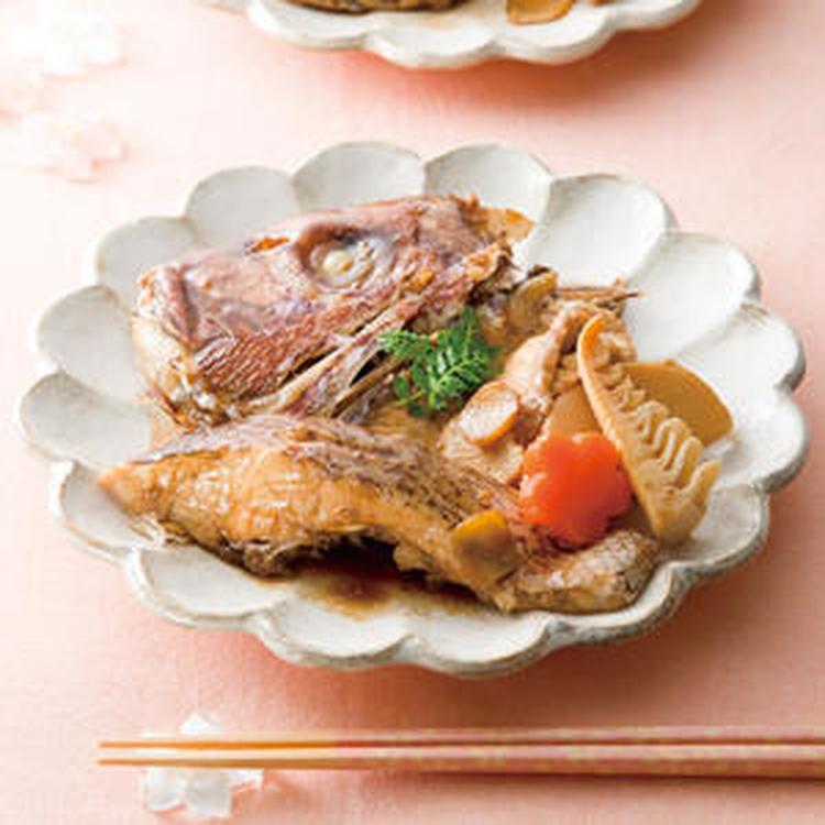 鍋にAを煮立て、鯛の切身、(1)、たけのこを入れ、落とし蓋をして、中火で15〜20分ほど煮る。火を止める直前に、にんじんを加える。
