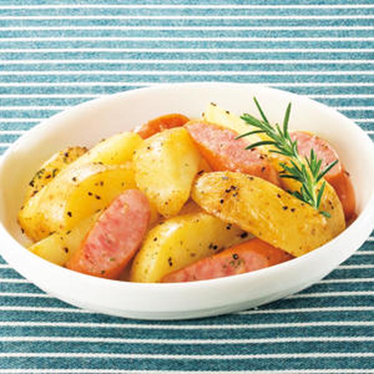 耐熱容器にじゃが芋を入れてラップをかけ、電子レンジ(600W)で約5分加熱する。
