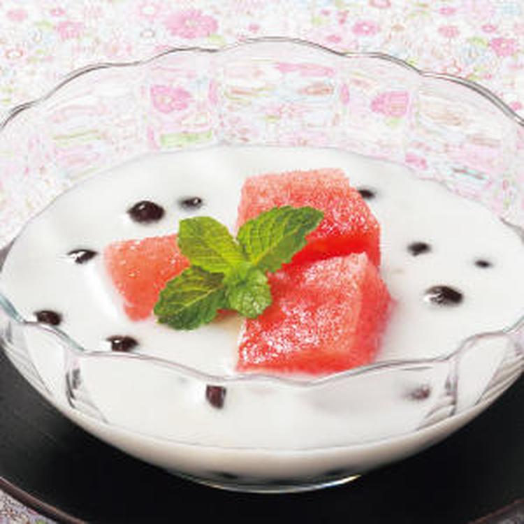 器に(1)・(2)を入れ、すいかをのせてミントを添える。
