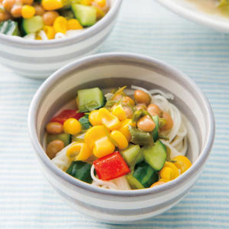 コーンと夏野菜の納豆和え