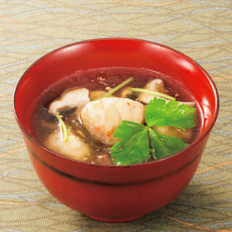 鍋に水4カップ・つみれ・しいたけを入れて中火にかけ、煮立ち始めたら弱火で約2分煮る。