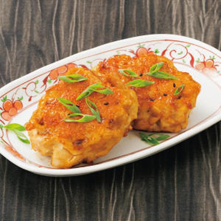 ボウルに鶏ひき肉・(1)・Aを入れて粘りが出るまでよくこね、8等分して小判型に整える。