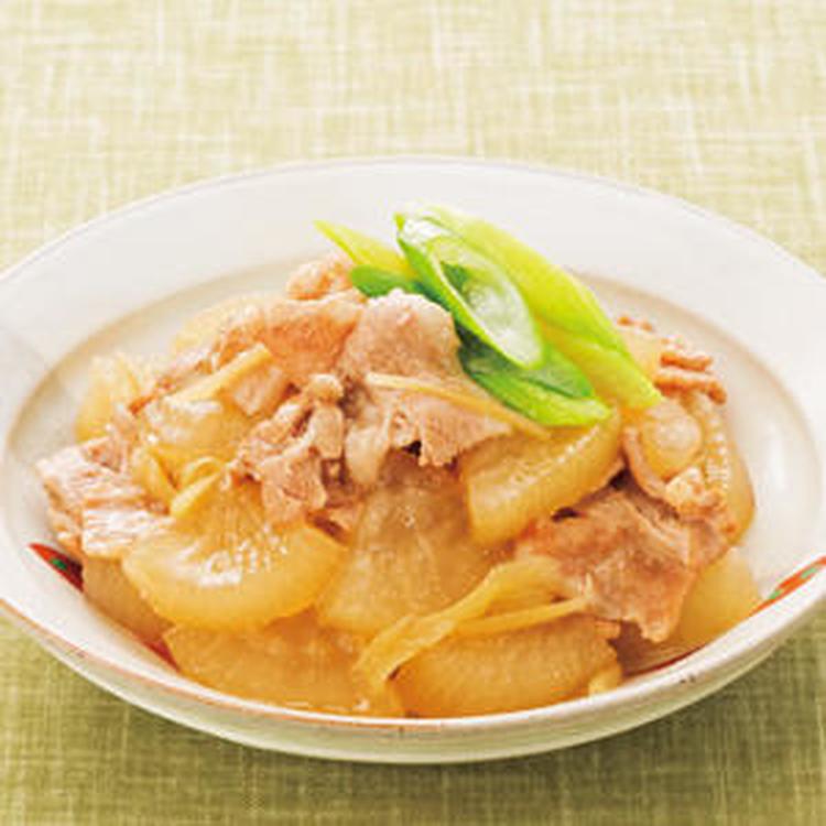 鍋を中火で熱して豚肉・しょうがを炒め、大根・白ねぎを加えて炒め合わせる。