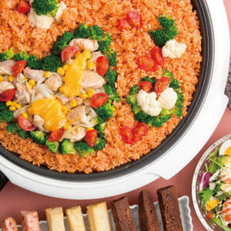 ホットプレートを約200℃に熱してサラダ油をひき、Bを入れて炒め、鶏肉に火が通ったら塩、こしょうで調味して中央に寄せ、ハートの形にしてスイッチを切る。