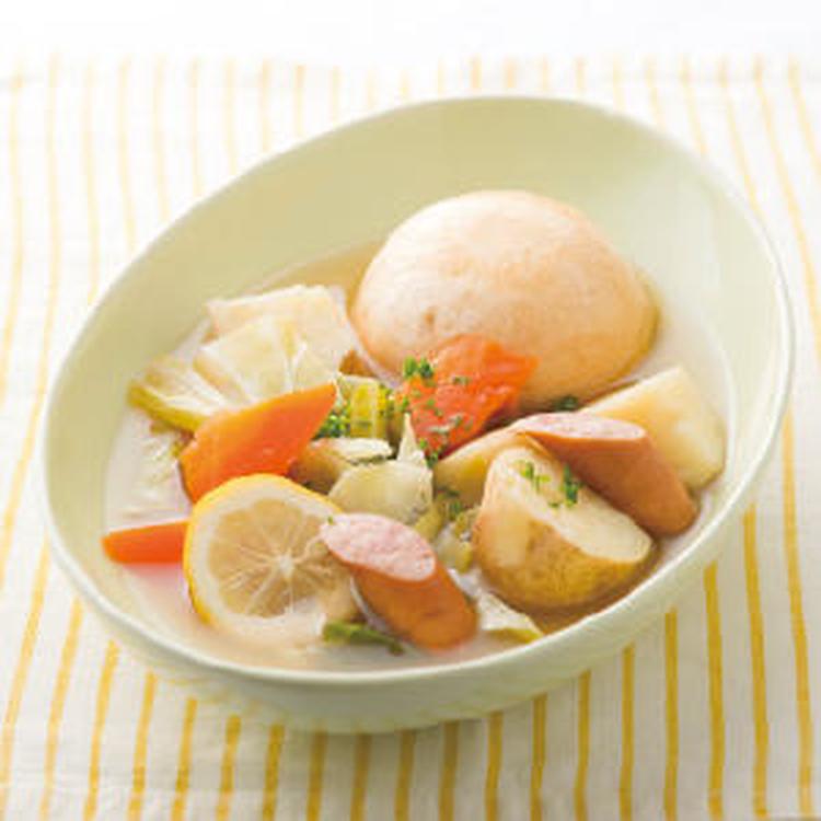 鍋にAを入れて煮立て、弱火にして野菜が軟らかくなるまで煮込んだら、キャベツを入れてさっと煮て、火を止める直前に麩、レモン汁を加える。