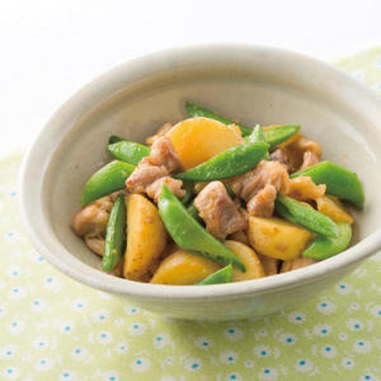 シャキシャキした食感が楽しめるスナップえんどうを主役に、 新じゃがと鶏肉でボリュームを出した、メインになるおかずをご紹介。