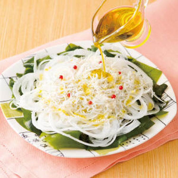 わかめは熱湯に入れてさっと茹で、緑色に変わったら冷水に取り、水気をしっかりきり、ひと口大に切る。