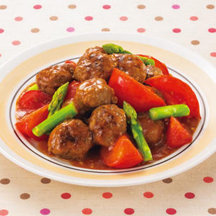 Bを加えてひと煮立ちさせ、アスパラを加えたら同量の水で溶いた片栗粉でとろみをつける。