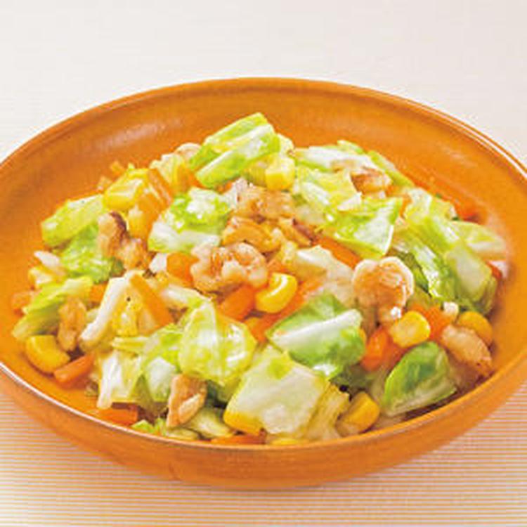 Aに塩小さじ1/2を振って揉み、しんなりとしたら水気をしぼってボウルに入れる。