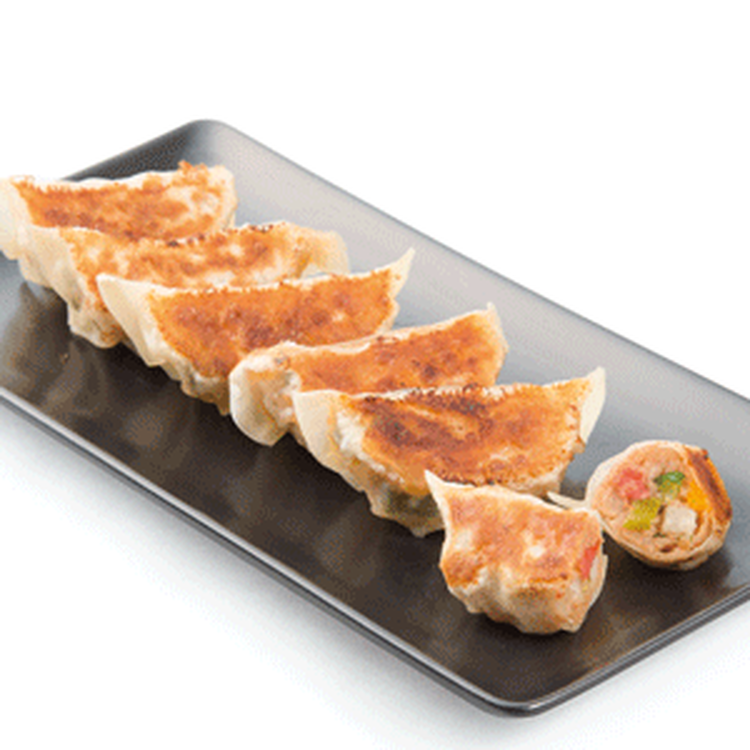 ポリ袋にAを入れてもむようにして混ぜ合わせ、粘りが出たらラビゴットソースを加えて混ぜる。ポリ袋の片隅を切って、ぎょうざの皮の中央にしぼり出して包む。