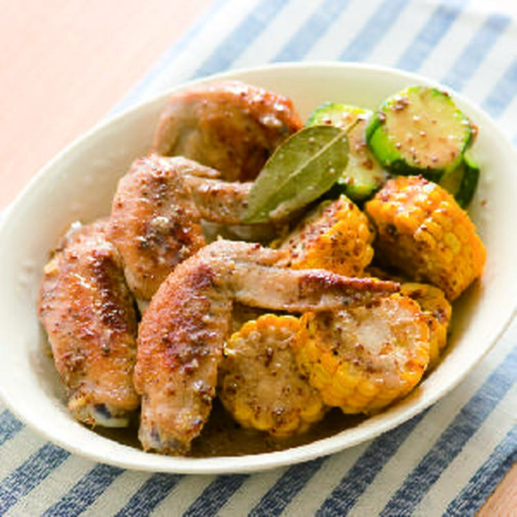 鍋にオリーブ油を熱してAを両面こんがりと焼き、ズッキーニを加えて軽く火を通す。