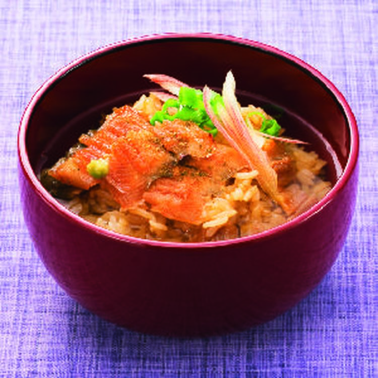 アナゴとご飯を混ぜて薬味をのせ、だしをかけていただく。