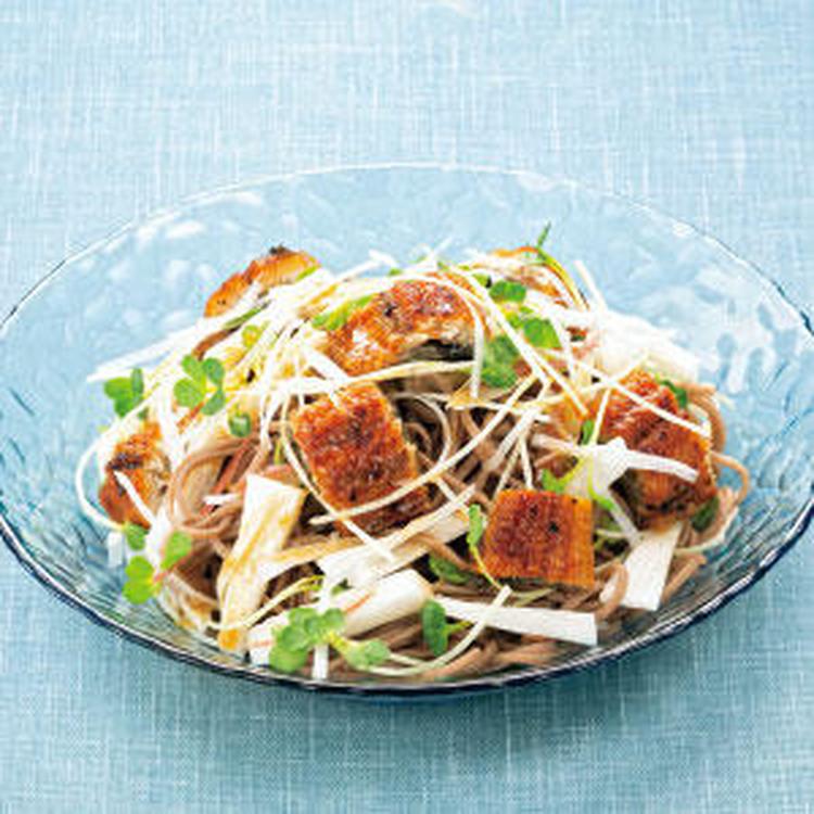 (2)に混ぜ合わせたAを1/4量入れてサッとあえ、(1)・うなぎのかば焼き・Bを加えて混ぜ合わせる。
