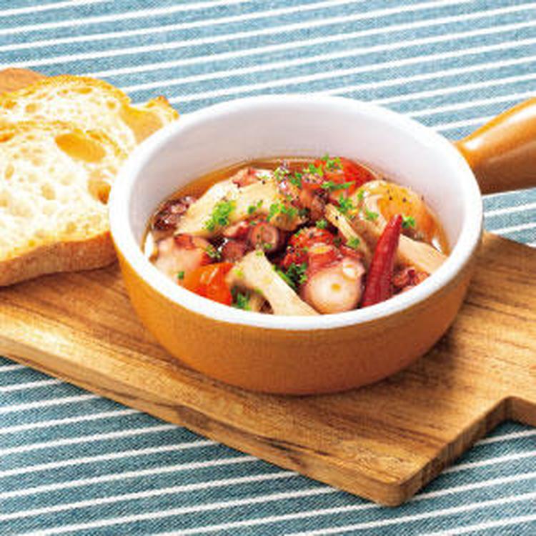 タコ、エビは水気をよく拭いて耐熱ボウルに入れ、Aを加えてふんわりとラップをかける。電子レンジ(600W)で約5分加熱する。