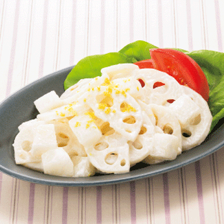 レンコンは厚さ約5mmの輪切り、太い場合は半月切りにし、酢水(分量外)に浸けて水気を切る。