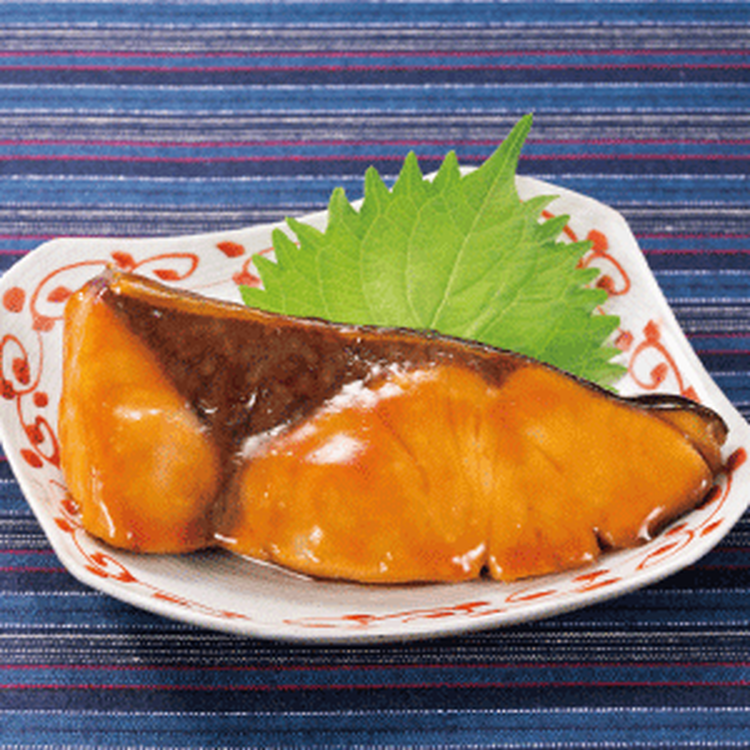 とり出してスプーンでたれを身に塗るようにかけ、全体につや良く仕上がったら器に盛って大葉を添える。