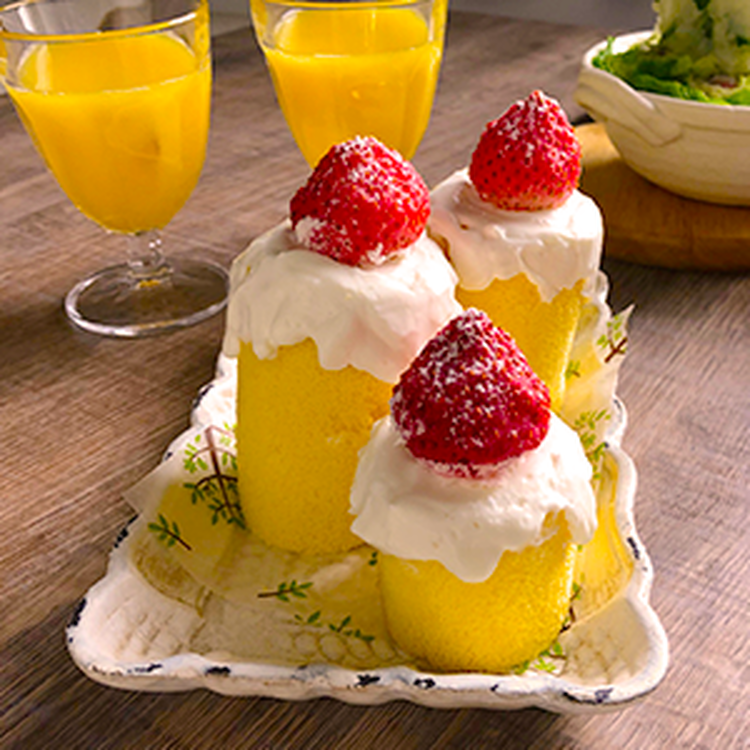 - ロールケーキ〈細め、市販品〉(3等分して2本はそのまま、1本はさらに2等分する) 1袋