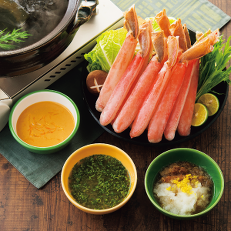 かにしゃぶ 3種のつけだれ(みかん味噌マヨ・春菊ごま・おろしレモン)