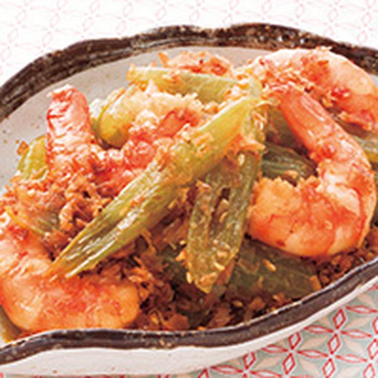 ふきとエビのおかか炒め