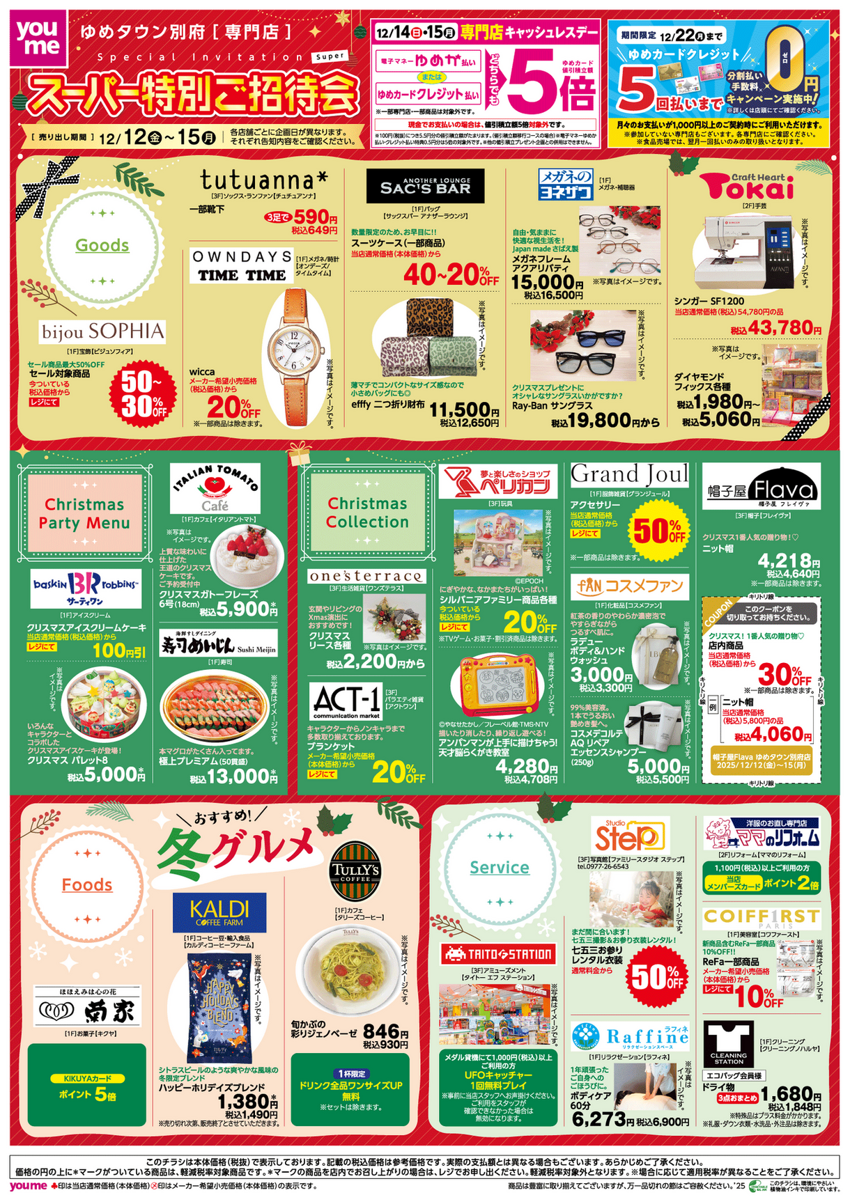 【12/12(金)~15(月)】専門店『スーパー特別ご招待会』