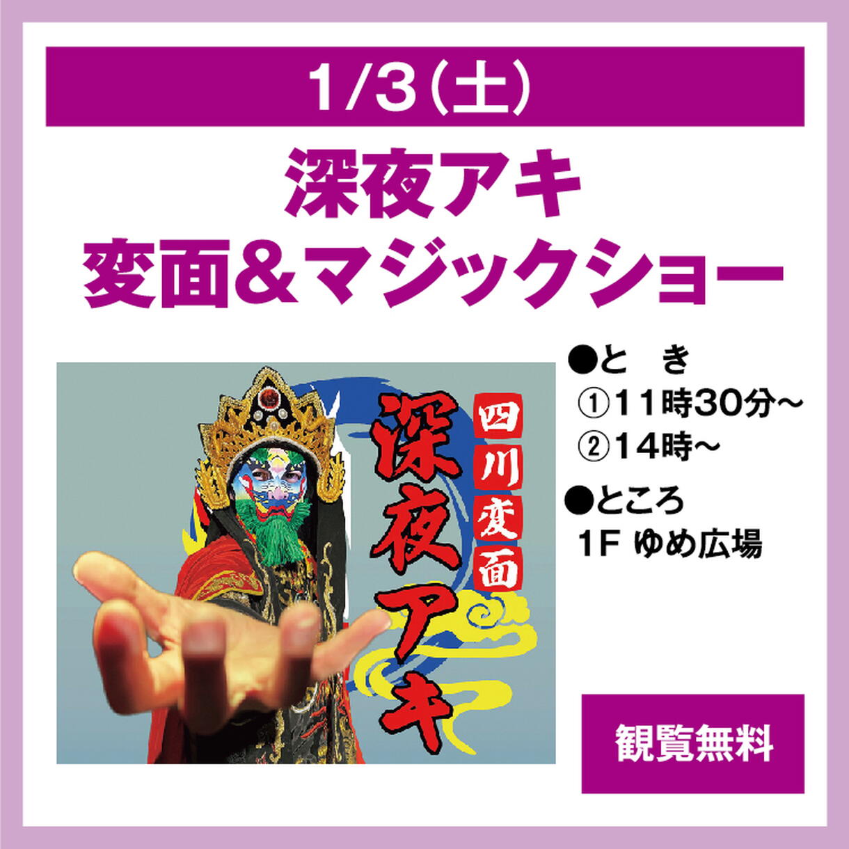 全国で活躍中の深夜アキの変面&マジックショーをゆめタウン別府で開催します。