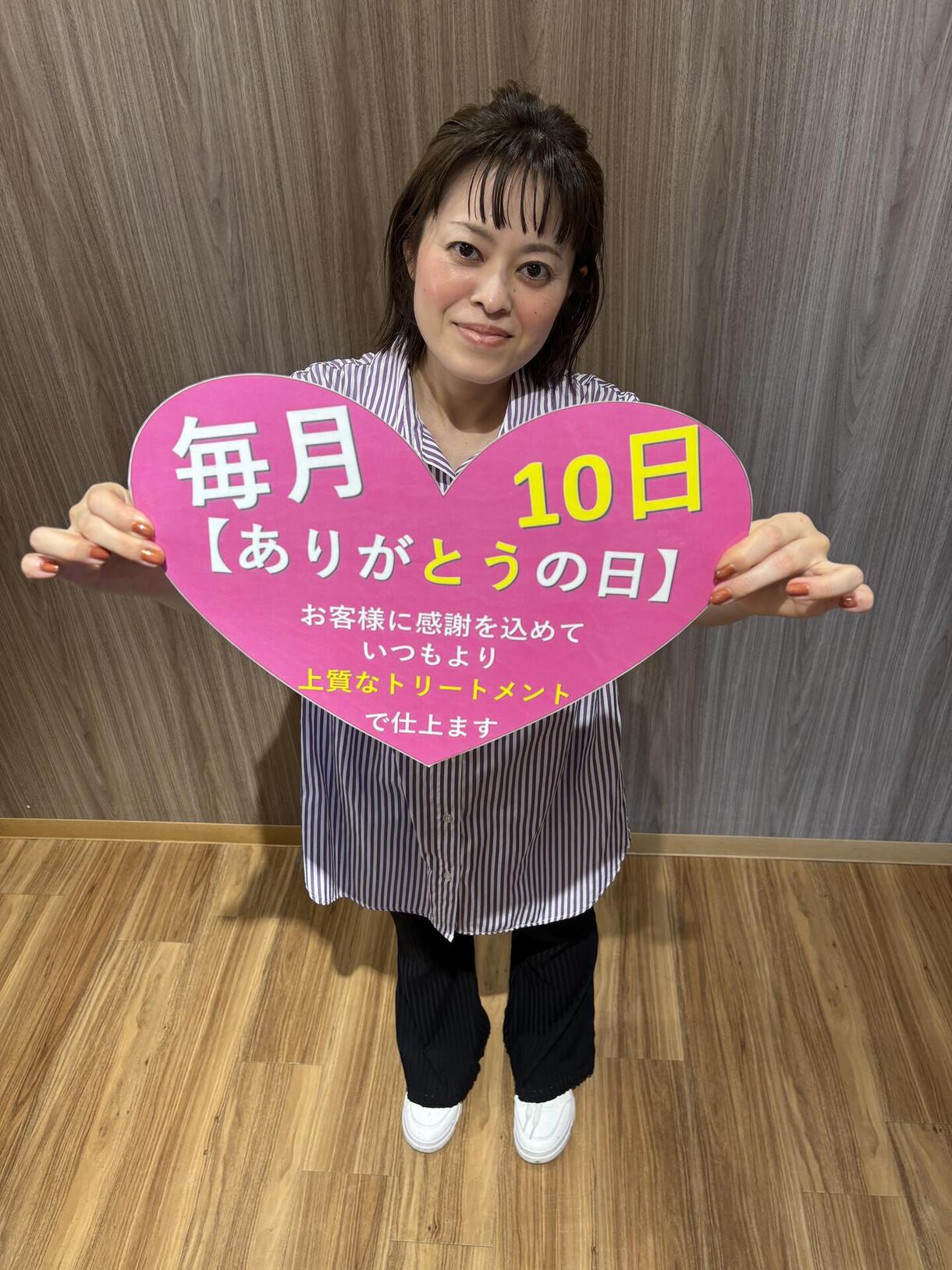 「ありがとうの日」当店では毎月10日は通常よりワンランク上の上質なトリートメントで仕上げさせていただきます☆.*゜