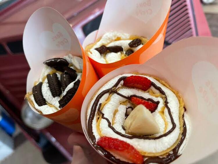 ボンズクレープは、40種類のクレープをご用意し、オリジナルクレープ粉と和の配合を組み合わせた生地を高温で素早く焼き上げた黄金色クレープです。