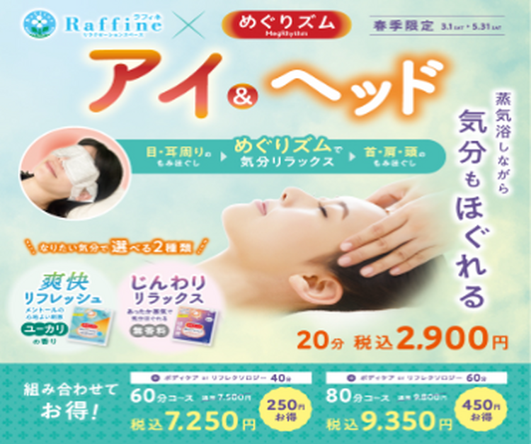 ボディケアなどの施術を通じてココロとカラダを解放させ、リラクゼーションのひと時をお過ごしください。コース例)ボディケア・リフレクソロジー20分2,300円 / 40分4,600円 / 60分6,900円 (全て税込)