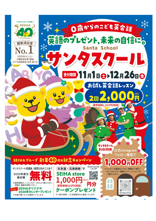 0歳~15歳の英会話スクール🌈ショッピングセンターの中にあるので、お買い物のついでに通っていただけます🚗